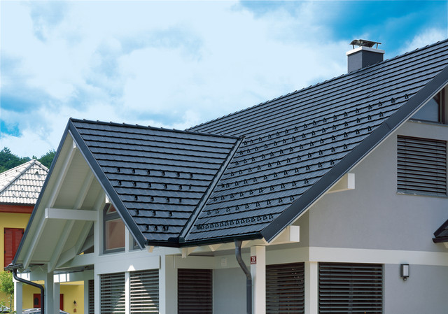 RONA 183 — це черепиця з профільованою поверхнею в саксонському стилі з квадратним зрізом. Ця модель особливо цікава в натуральній колірній гамі. Вона має три характерні структурні канавки, які надають черепиці цікавого візуального акценту. Така черепиця особливо популярна у східній Німеччині.
